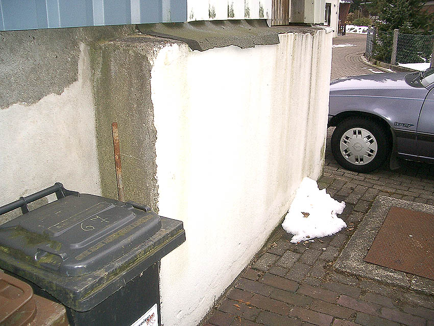 Der gesamte Bunker ist außen verputzt. Ursprünglich war er mit Erdreich angeböscht und überdeckt...