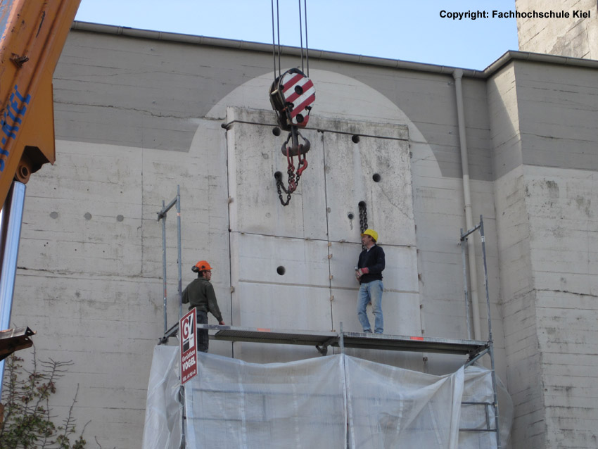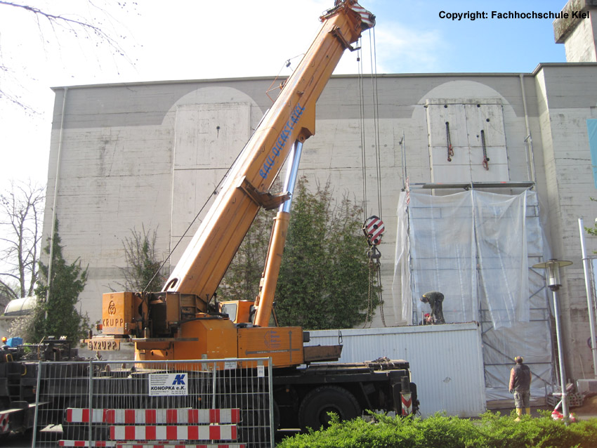 Nachtrag 05.05.10: In diesen Tagen wird einer der beiden ehemaligen Entfestigungsschnitte an der Nordwand des Bunkers (vor dem Bauwerk stehend der rechte Schnitt) wieder geöffnet. Der Bunker, der nach dem Krieg entfestigt wurde, ist zu Zeiten des Kalten Krieges wieder verschlossen worden, um ihn für den Zivilschutz herzurichten. Nun erfolgt im Bereich des einen von zwei ehemaligen Demilitarisierungsschnitten an der Nordwand sozusagen die zweite Entfestigung. Eine uns bisher an keinem anderen Bunker in Deutschland bekannte neuerliche bauliche Veränderung in der Art und Weise. Die Maßnahme erfolgt im Zusammenhang mit der erweiterten Nutzung des Bunkers als Computermuseum. Zwei Fotos der Bauarbeiten mit freundlicher Bereitstellung durch die FH: