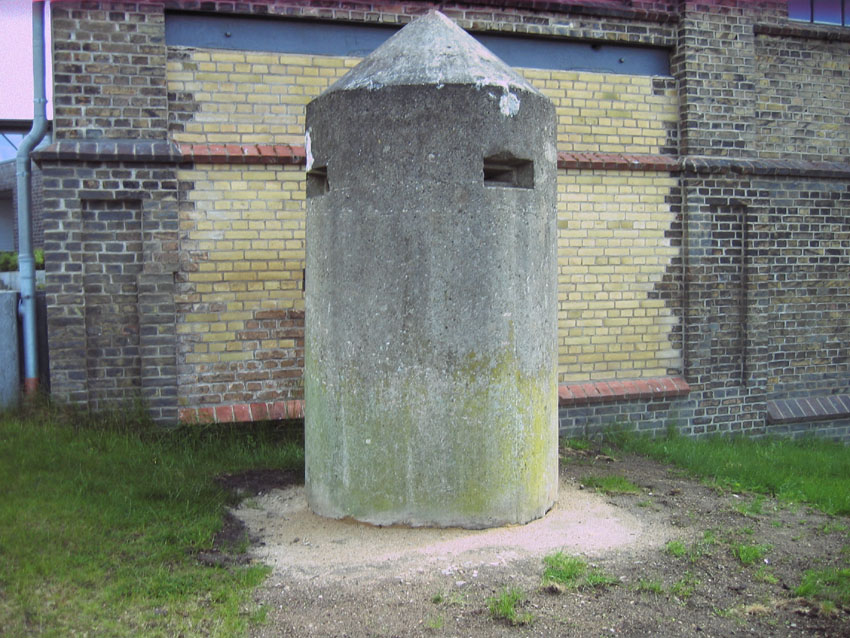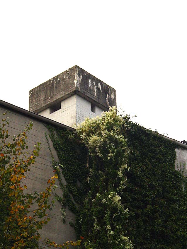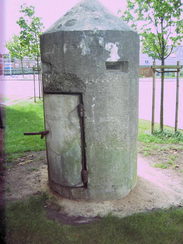Der Lüftungsturm ist bauartähnlich zum Turm des Bunkers Kronshagener Weg / Sedanstraße ("Sedan-Bunker"), nur ist er im unteren Bereich höher...