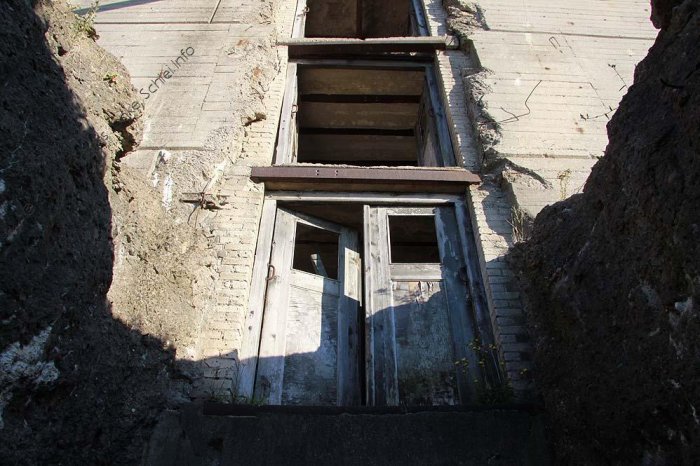 Ist dies einer der "Pilze" im verschütteten Zustand, eventuell der oben vermerkte? Die Form sieht einem realen Pilz sehr ähnlich. Augenscheinlich ist die Deckenstärke des Objektes sehr dünn. Weitere vorliegende Fotos des fortgeführten Abrisses zeigen, dass auch die Wand sehr dünn ausgeführt wurde. Ein seitlicher Einstieg im Bereich des circa 4 Meter (?) tiefen, zudem im Unterbereich mit Erdreich gefüllten Innenraumes ist nicht zu sehen gewesen. War der Einstieg mittig der Decke? Falls Bestätigung: Wurden die "Pilze" aufgrund der ersichtlichen dünnen Decke und Wand regulär eventuell unter Erdgleiche angelegt / Erdreich als Schutz? Dagegen spricht allerdings der Verdämmungseffekt. Das (seltene) Objekt (wenn nicht sogar mittlerweile Unikat?) müsste dann eigentlich für die Nachwelt erhalten werden...
