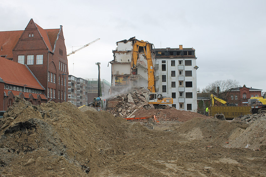 Unsere Meldung vom 22. März 2016: Abgerissen wird seit heute das alte Gebäude vom ehemaligen Bauunternehmen Hermann Möller an der Virchowstraße Ecke Rheinstraße (Rheinstraße 75 / Virchowstraße 8). Zuvor wurde bereits das ehemalige C&A-Kaufhaus planiert. Hier soll ein neues Verkaufszentrum entstehen: "Wilhelm's Outlet". Das Bauunternehmen Möller koordinierte Bunkerbauvorhaben und entwarf auch viele der Bunker in Wilhelmshaven im WK 2. Die Aktivitäten reichten hier bis in diverse andere norddeutsche Städte. Unter anderem war man auch beim U-Bootbunkerbau beteiligt. Das historische Hermann-Möller-Tor von 1934 wurde bereits gesichert und wird im Neubau ausgestellt, ebenso der historische Mauerstein mit Gründungsdatum 1934. Er wird in die neue Fassade eingearbeitet. Mit dem Gebäude verschwindet auch der Luftschutzkeller im Inneren. Mehr Bilder auf unserer Facebookseite: Luftschutzbunker in Wilhelmshaven