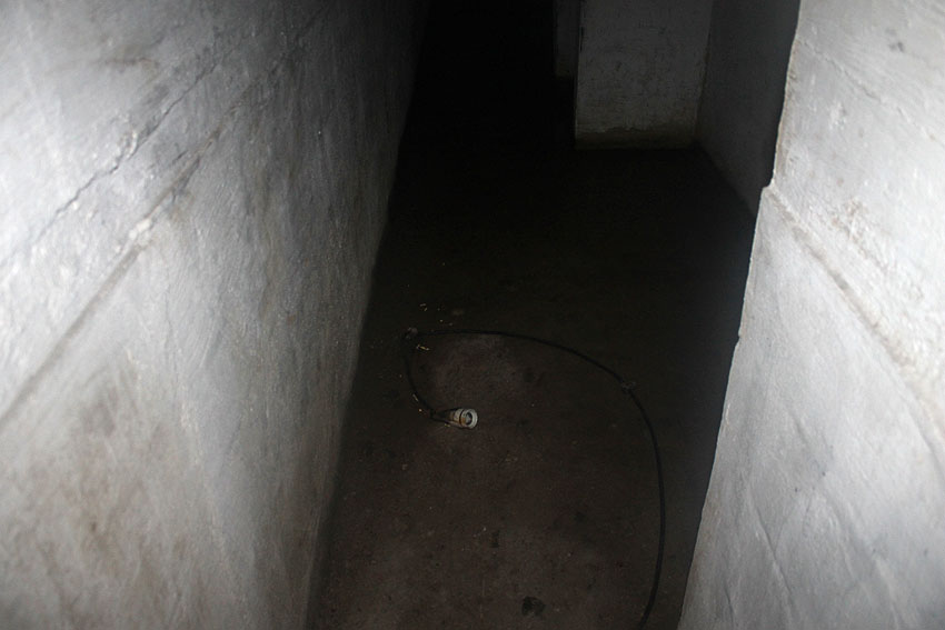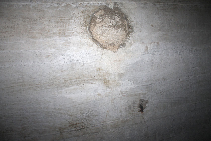 Im Inneren dieses Unterteiles des Notausstiegsturmes wird sich ursprünglich mindestens ein Steigeisen befunden haben, dessen Rest noch erkennbar ist (siehe weiter unten) - eher aber zwei. Dieses bzw. diese werden in den Jahrzehnten großteilig weggerostet sein.