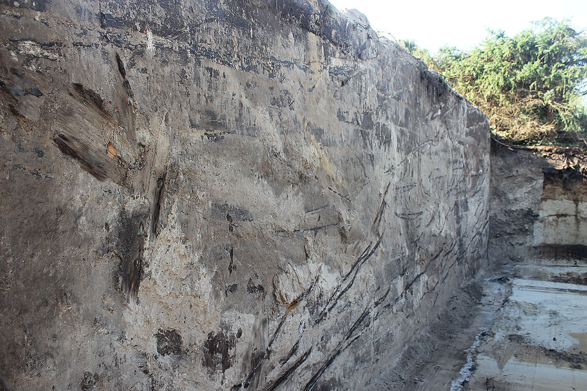 Der um das Bauwerk herum befindliche feine Sand wurde damals während der Errichtung angefahren, um hier eine "Lockerung" des Erdreiches herbeizuführen / Verdämmungseffekt - Druck bei Nahtreffer. Dies ist bei vielen Deckungsgräben derart durchgeführt worden.