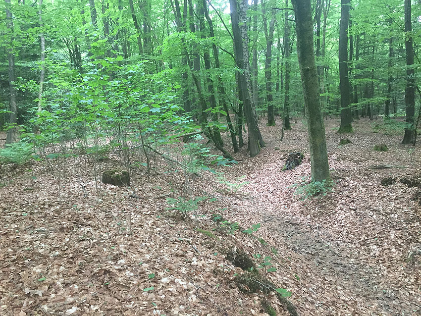 Hinweis 03/18: Rundbunker 1 / West befindet sich auf zugänglichem Landesforstgelände. Rundbunker 2 / Mitte, Rundbunker 3 / Ost und der eckige Kleinbunker sind momentan nicht zugänglich, da sie sich auf Privatgelände (Pfadfinderverein) befinden.