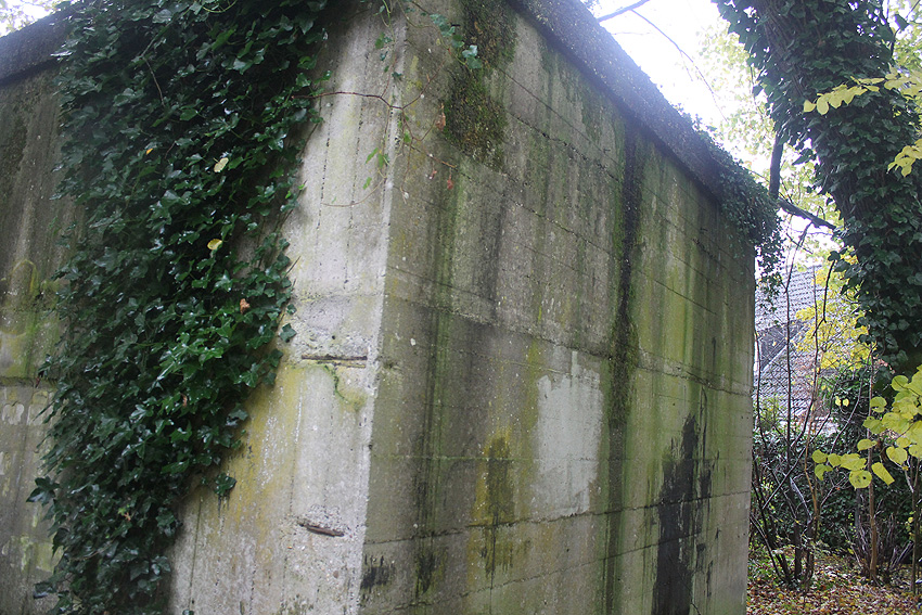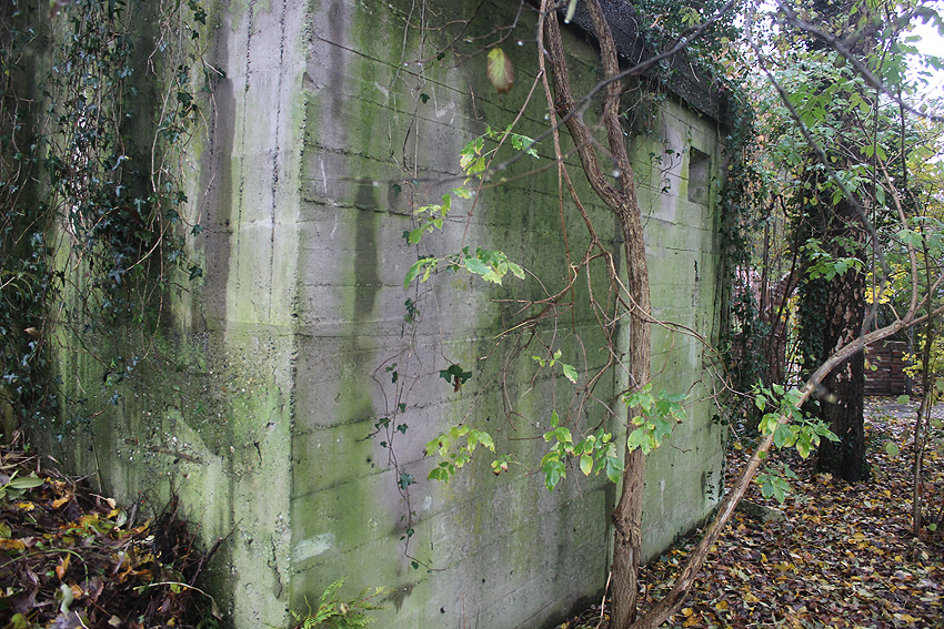 Zweiter rechteckiger, wohl bombensicherer Bunker (Kleinbunker) mit vier Eingängen (verschlossen und zugemauert, Fledermausquartier). Bunker steht an der Robert-Koch-Straße / bauartgleich zum anderen Kleinbunker.