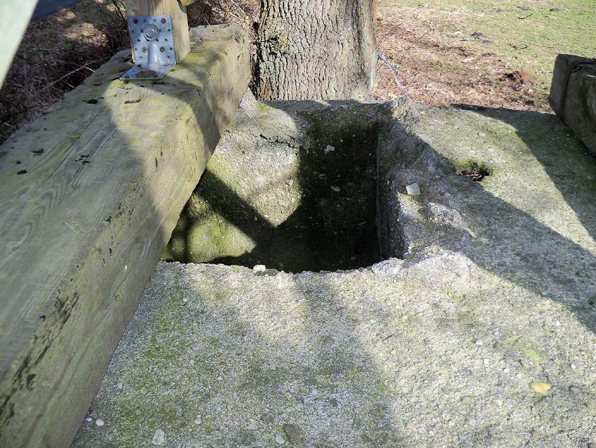 Hauptzweck vermutlich: "Kabelbrunnen" für Telefonleitung oder Stromleitung / im Falle einer Stromleitung eventuell Bestandteil Linie vom Torfkraftwerk Wiesmoor in Richtung Einsatzhafen Marx / schwere Flakstellung Hohemey / schwere Flakstellung Blauhand