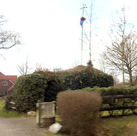 Es handelt sich tatsächlich um den (mittlerweile von der Straße kaum erkennbaren) Rundbunker gegenüber der ehemaligen Straßenmeisterei in Friedeburg an der Friedeburger Hauptstraße 130.