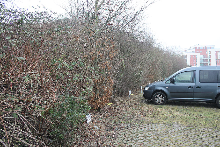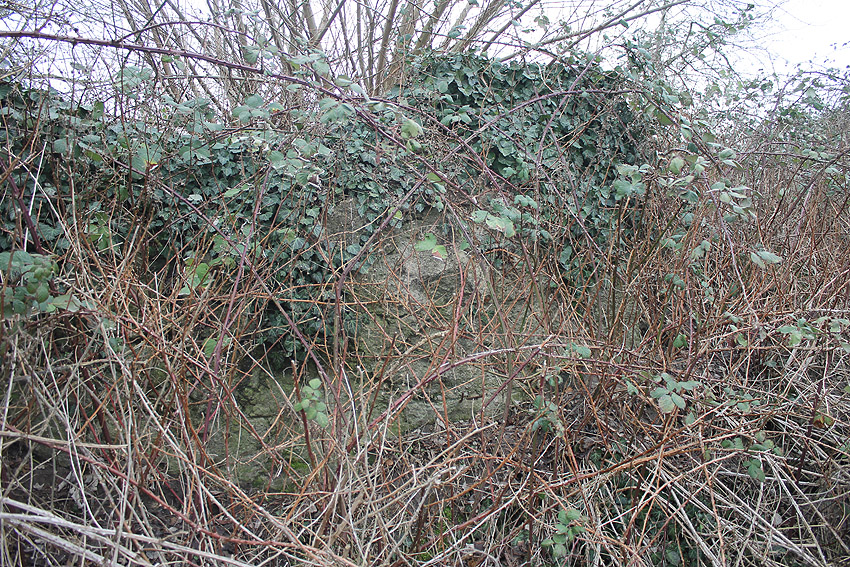Entgegen der Vermutung bei unserem letzten Besuch 2008 ist doch mehr erhalten geblieben, als zunächst gedacht. Vorgelagertes Erdreich und die mit Erde zum Verwechseln ähnliche Farbe des Betons während der schlechten Witterung beim letzten Besuch hatten einen falschen Eindruck erweckt...