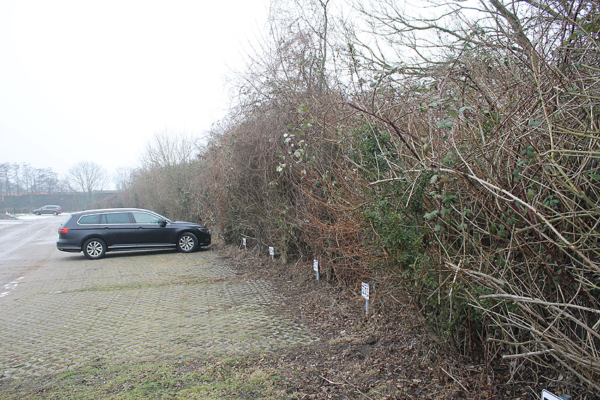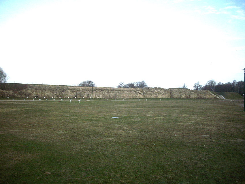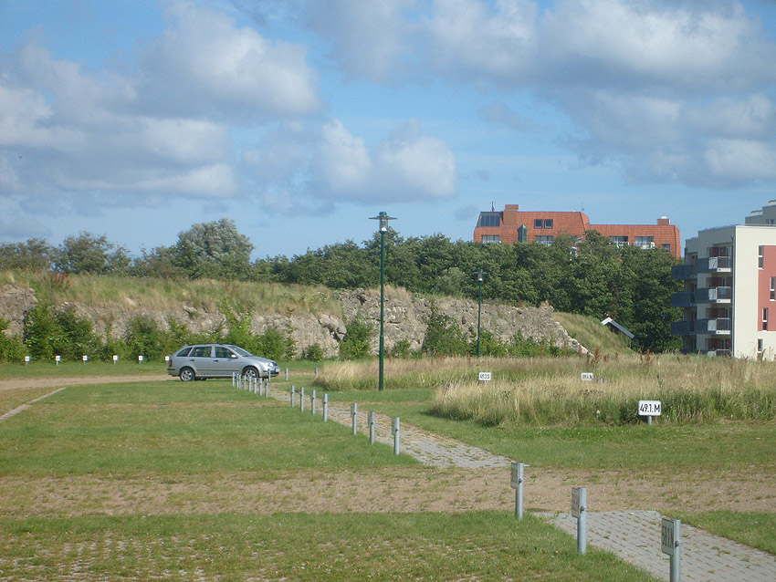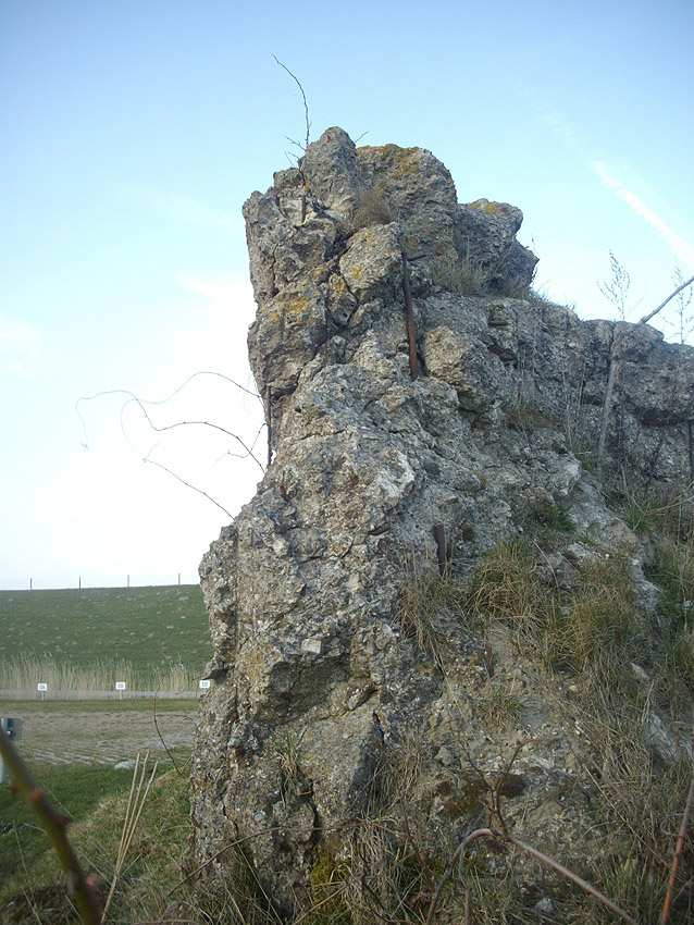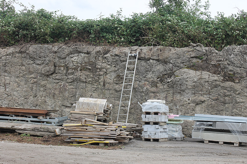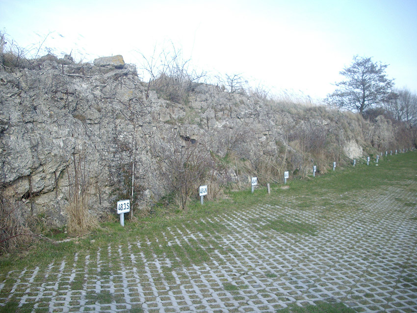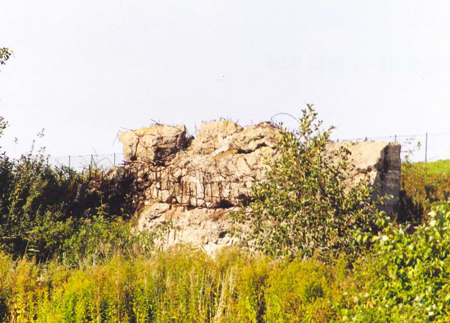 Nun sind die gesamten Reste der Nordflanke der ehemaligen Verbunkerungen klar erkennbar. Diese bleiben weiterhin erhalten und stellen nun eine Art künstliche Klippe dar. Die gewaltige Betonfront erstreckt sich von Westen nach Osten über fast 250 Meter hinweg...