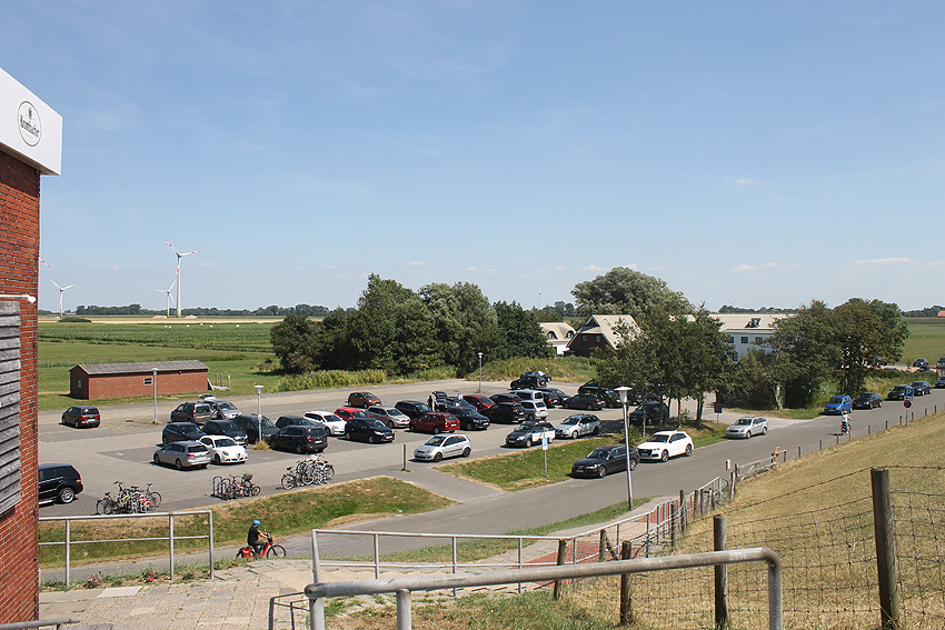 Oben: Rechts Süd-Teilbereich des ehemaligen Wirtschaftsgebäudes / inzwischen saniert und renoviert / das Restaurant auf dem Deich im Bereich Peters-Denkmal hat keinen historischen Zusammenhang mit der Flakstellung bzw. mit dem anliegenden Untergruppenkommando Ost.