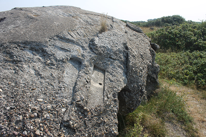 Typische Tarnung: Vertiefungen / Säcke in der Schalung während des Gießens / wie am ganzen Atlantikwall verbreitet ausgeführt...