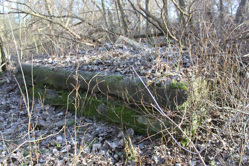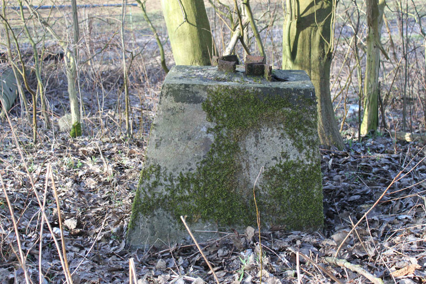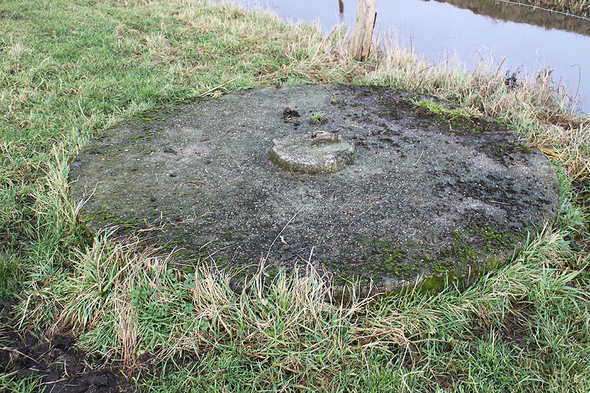 Ein Stück weiter östlich der ehemaligen schweren Flakstellung Dangast befindet sich dieses massive Betontrümmerstück auf einer Weide am Deich. Der Scheinwerferstand 12 befand sich zunächst direkt an der Flakbatterie auf dem Deich in Dangast. Im Buch "Die Luftverteidigung im Abschnitt Wilhelmshaven 1939-1945 (2. Marineflakbrigade)" von Friedrich August Greve ist jedoch in der Skizze im Buchdeckel der Scheinwerferstand 12 genau hier eingezeichnet, wo sich das Betonrelikt befindet. Es dürfte wohl wahrscheinlich sein, dass der Stand in späteren Kriegsjahren hierhin auf einen verbunkerten Sockel versetzt wurde. Das Objekt wurde nach dem Krieg gesprengt und größtenteils abgetragen. Auch befindet sich das ehemalige Infanteriewerk Wehgast unweit südwestlich des Objektes. Besteht hier ein Zusammenhang? Im kleinen Dreieckswäldchen westlich des Trümmerstückes sind zudem Fundamentreste zu sehen...