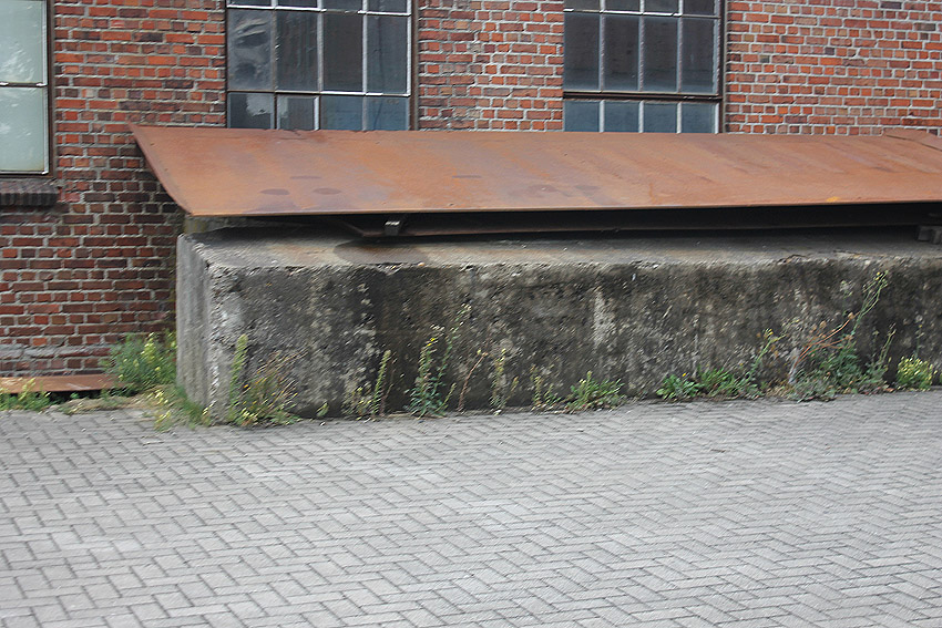 An der Ostwand des Gebäudes befindet sich zudem ein kleiner gemauerter Vorbau, der eine sichtbare Betondecke mit circa 20 Zentimetern Stärke besitzt. Eventuell gehört der Vorbau mit zur Anlage. Teilweise befinden sich zur Straße hin gelagerte Gegenstände davor (Kantsteine usw.), sodass der kleine Vorbau nicht immer zu erkennen ist.