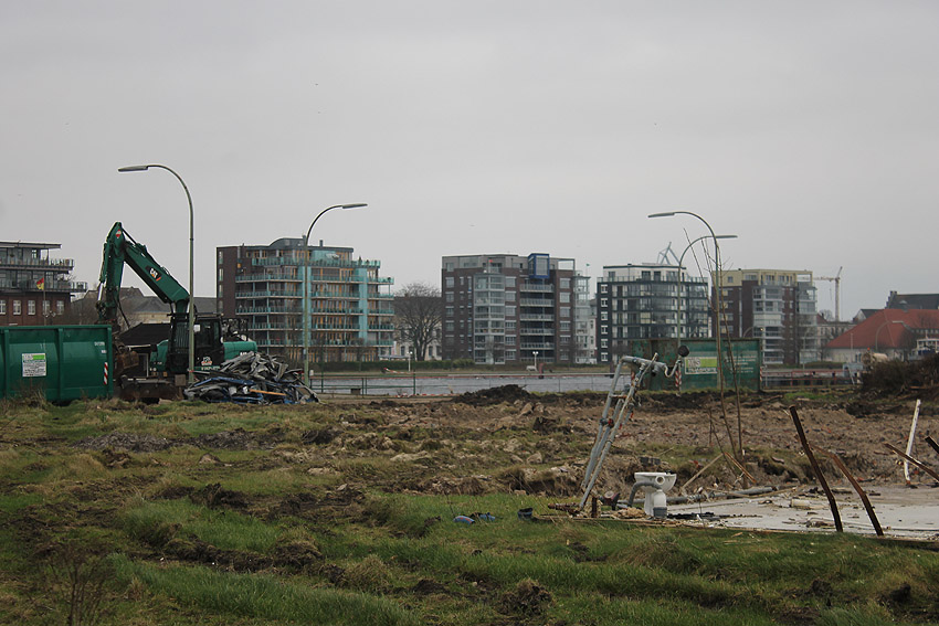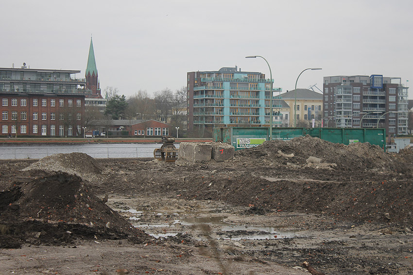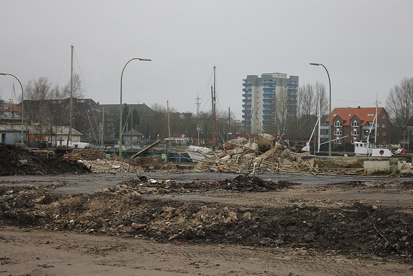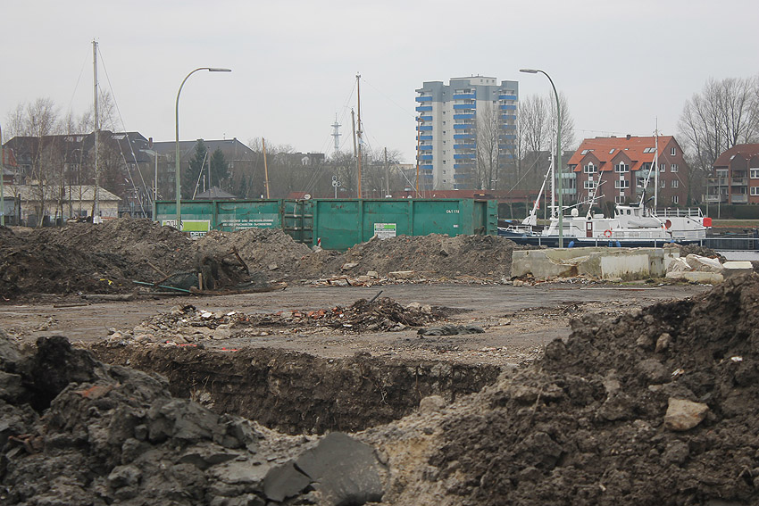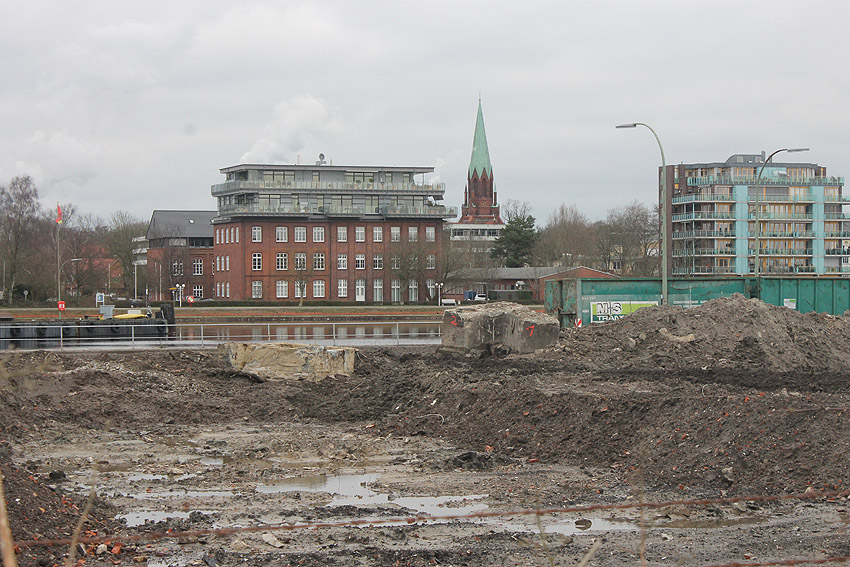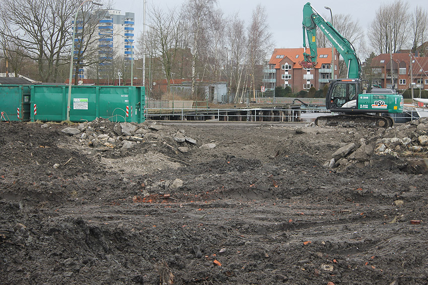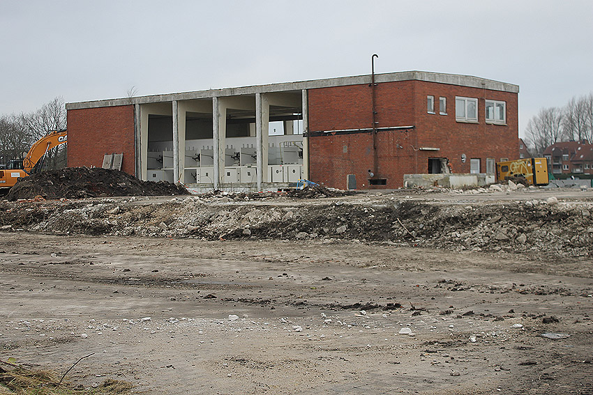 Die Bunkerdecke liegt nun wieder frei. Nur noch ein Gebäude existiert neben dem Tiefbunker auf dem Abrissgelände. Der Schornstein des Heizwerkes dürfte alsbald fallen. Ob die Arbeiten am Tiefbunker (wohl zunächst mit dem Abriss der Bunkerdecke) noch dieses Jahr beginnen, ist unklar.