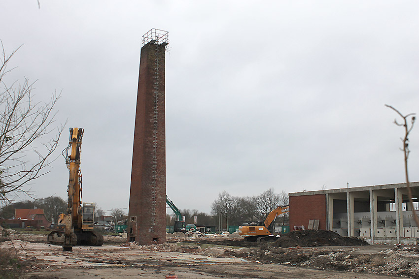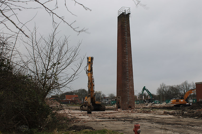 Der nahe am Bunker befindliche charakteristische Schornstein des ehemaligen Heizwerkes ist gestern gefallen.