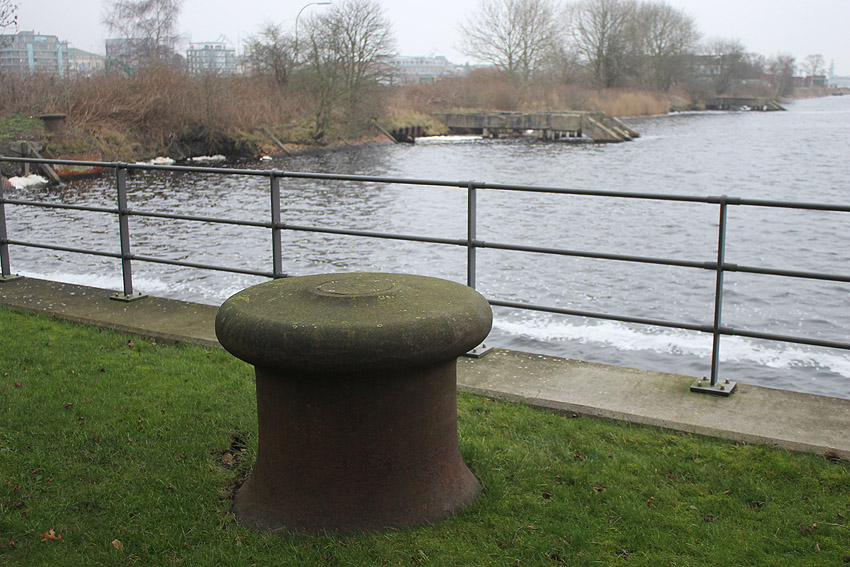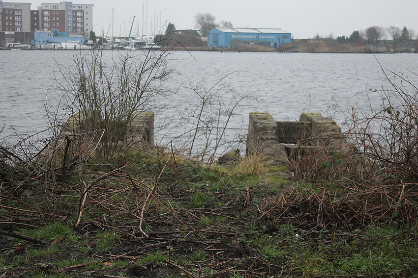 Das Objekt, bestehend aus zwei nebeneinander versetzt liegenden, eventuell durch eine Öffnung verbundenen Stahlbeton-"Quadraten", wurde im Januar 2018 aufgrund der Abrissarbeiten auf der Wiesbadenbrücke "entdeckt". Anscheinend war des nirgends verzeichnet. Bis in die Neuzeit stand genau auf der Objekt-Decke, die mit Erdgleiche in einer Linie lag, der Verkaufsstand für die dortigen Oldtimertreffen. Ist dies ein Munitionsbunker (Erster Weltkrieg?), ein Kohlenbunker (Kohlenzunge / Erster Weltkrieg?), eine Süßwasserzisterne (Schiffsversorgung? / Kühlwasser?), oder ein Tank (Öl / Treibstoff?) gewesen? Oder war es sogar eine weitere Personenluftschutzanlage? Der Abriss des Objektes erfolgt in Kürze. Der unter Wasser stehende Innenbereich wurde bereits leergepumpt. Wir berichten weiter.
