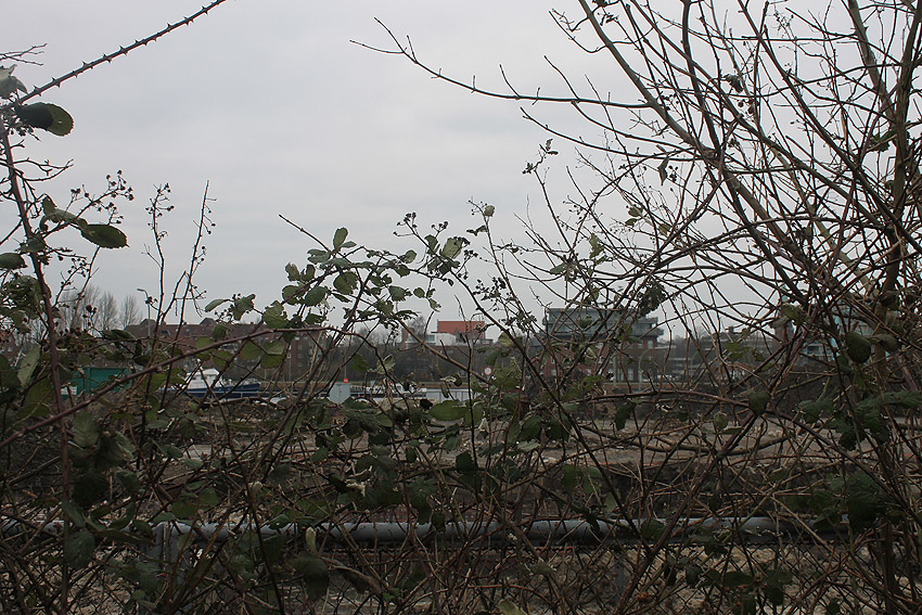 Auf dieser Fläche am Westbeginn der Wiesbadenbrücke befand sich die historische Baracke, die bereits vor einigen Wochen entfernt wurde. Diese Baracke wurde früh nach Kriegsende an der Stelle einer Ursprungsbaracke errichtet, die teilweise abgetragen worden war, deren Mittelbereich allerdings aber in den "Neubau" der frühen Nachkriegszeit integriert worden ist.