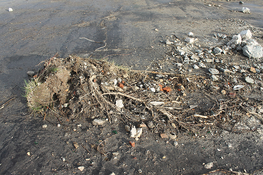 Nicht unerhebliche Teile der Ostdachecke des Tiefbunkers sind bereits abgerissen. An Objekt 2, welches wohl eine Zisterne darstellte, erinnert nur noch eine Erdkuhle mit einigen Trümmerstücken.